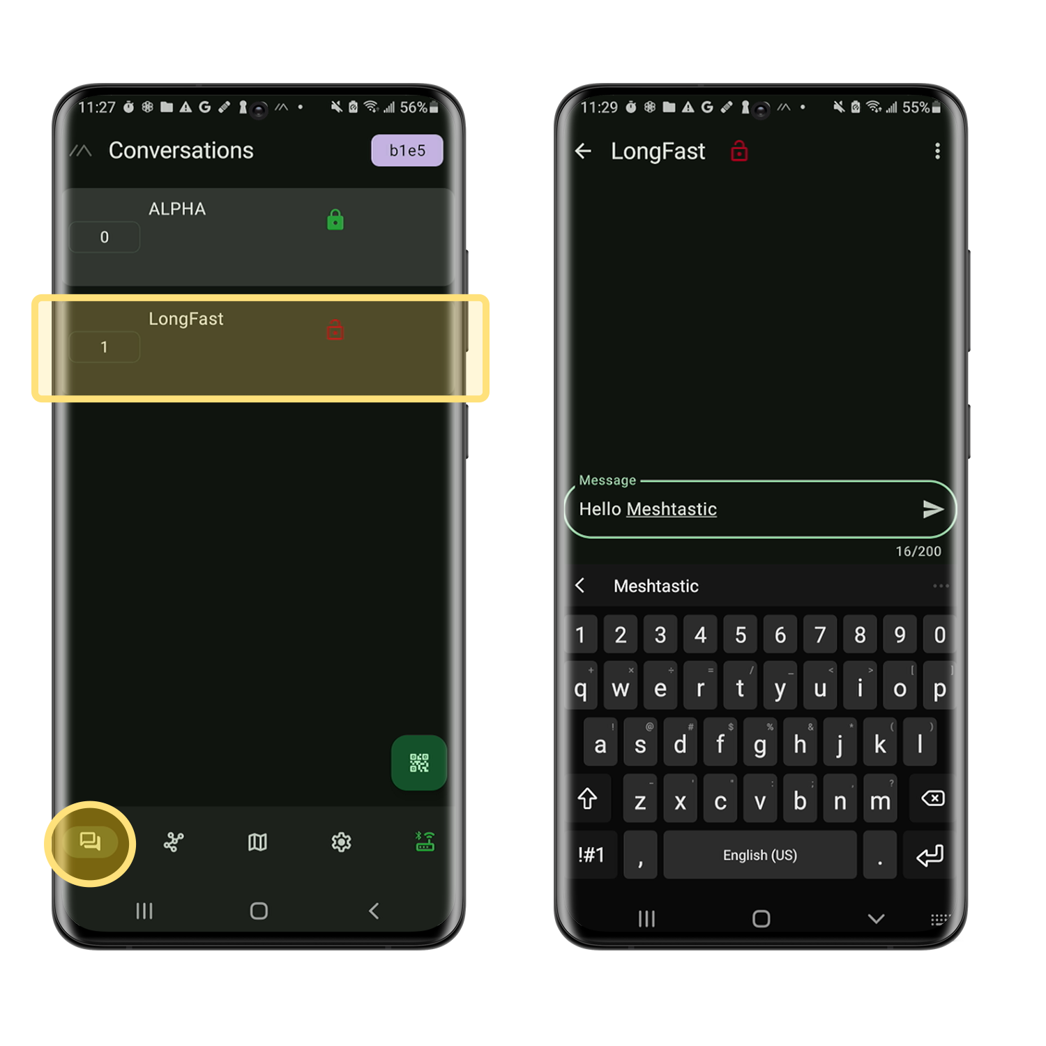- Type in a message and tap send, and your message will be transmitted to any local Meshtastic radios within range.