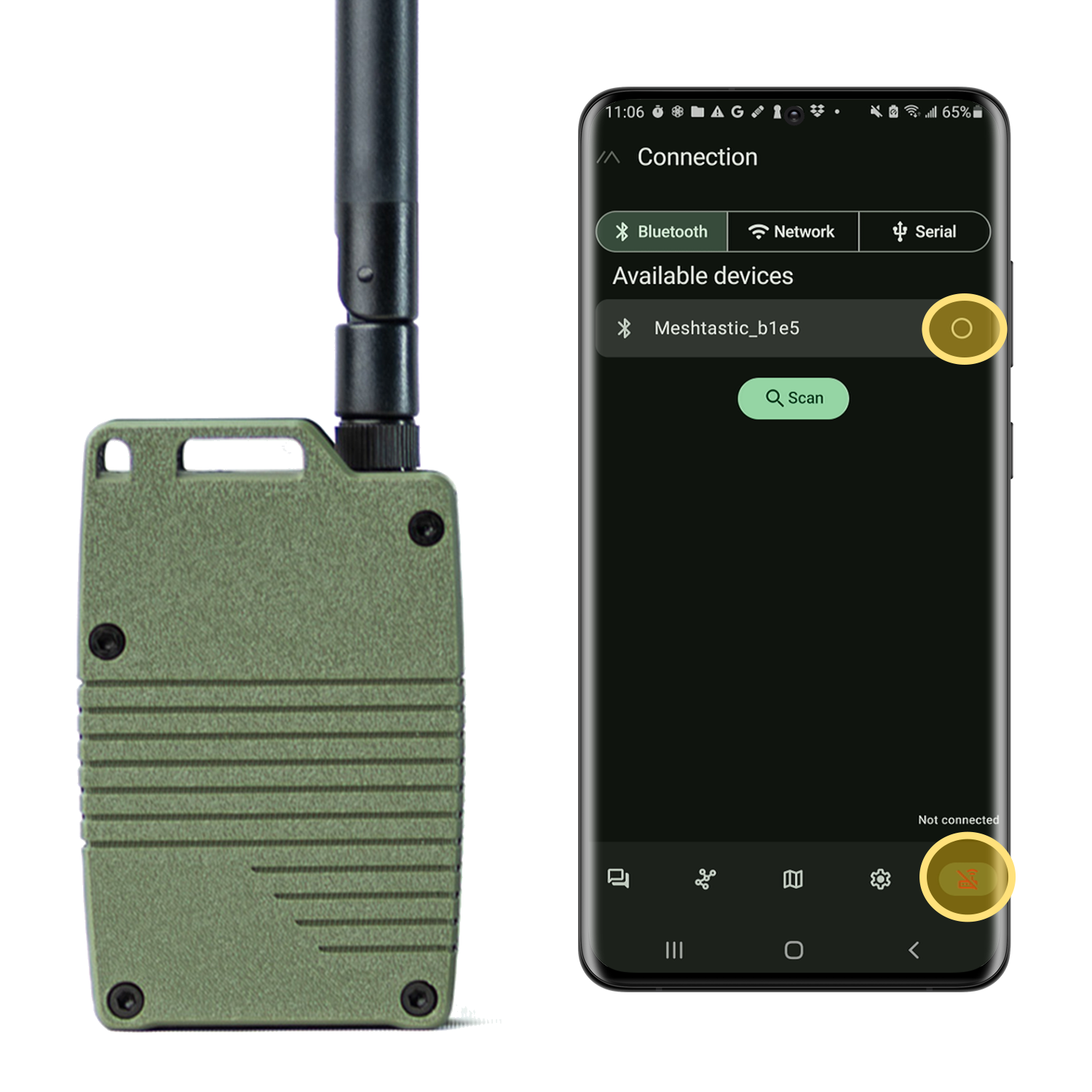 - Go to the Connection tab and find your radio on the Available Devices list. (Make sure your radio is on and tap Scan if you don't see it.)