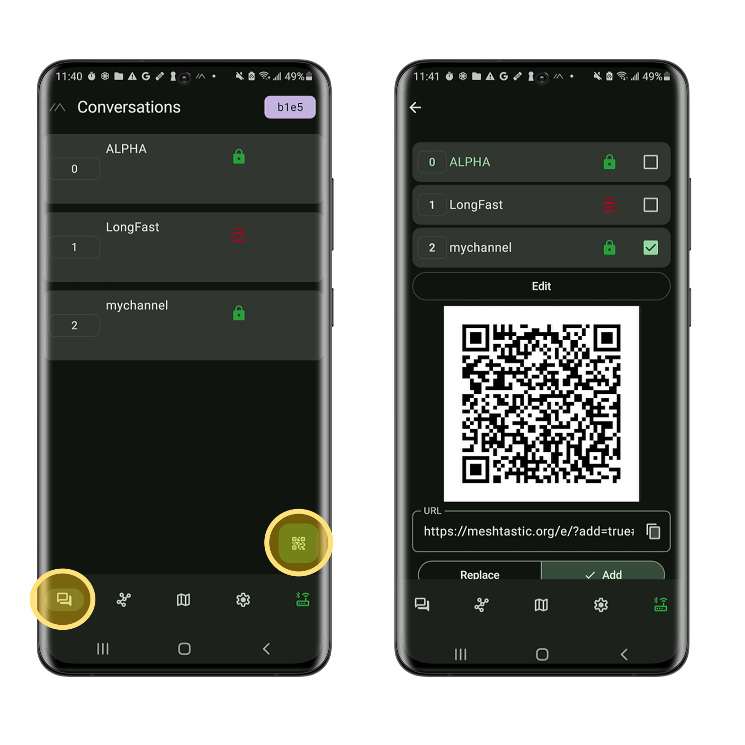 Share a QR code with others you'd like to communicate with on your private channel. The QR code will enable automatic configuration of the channel.