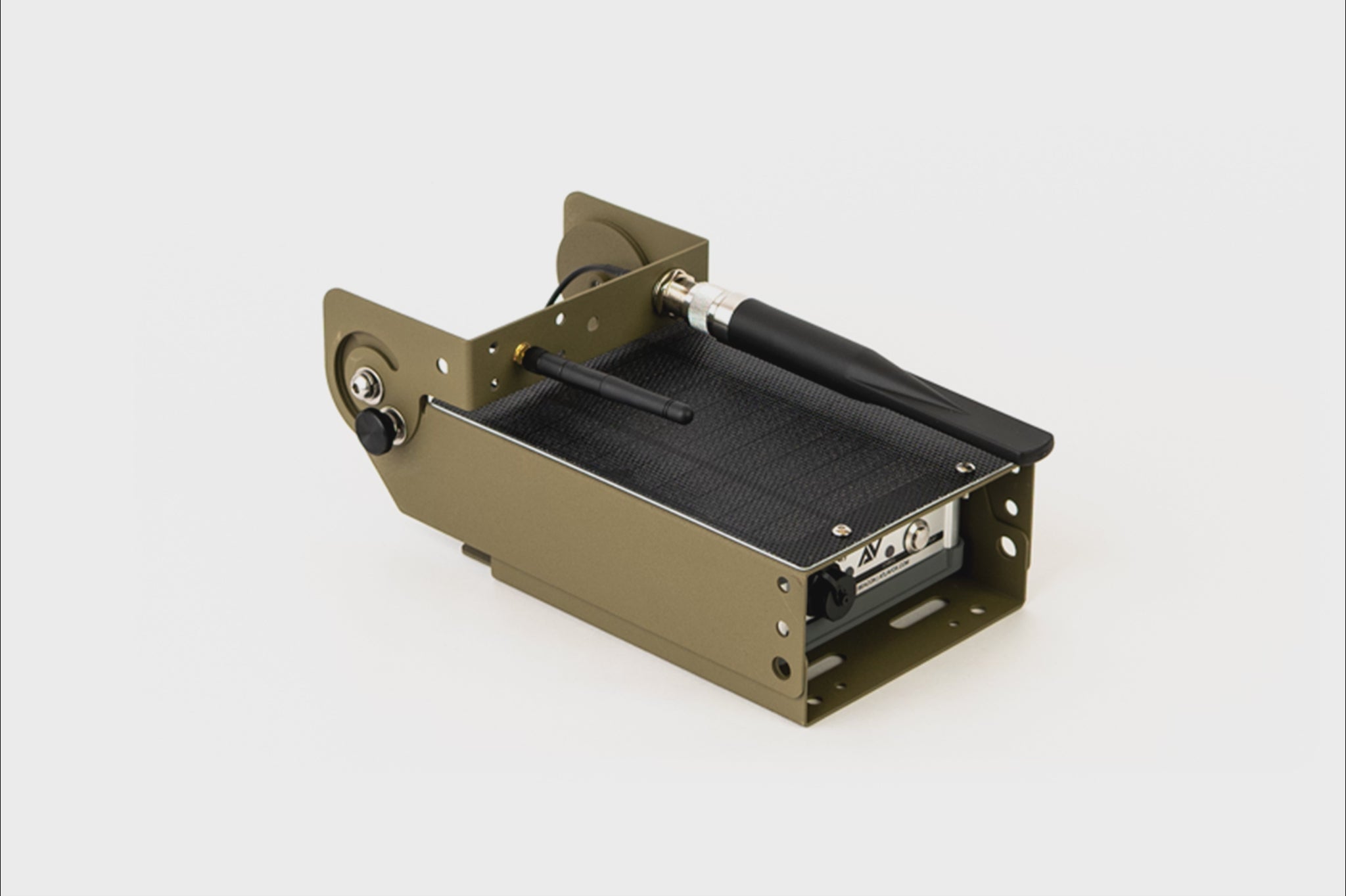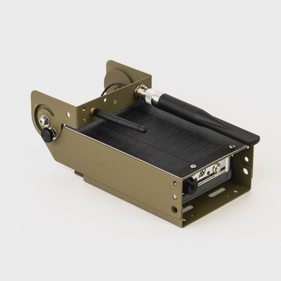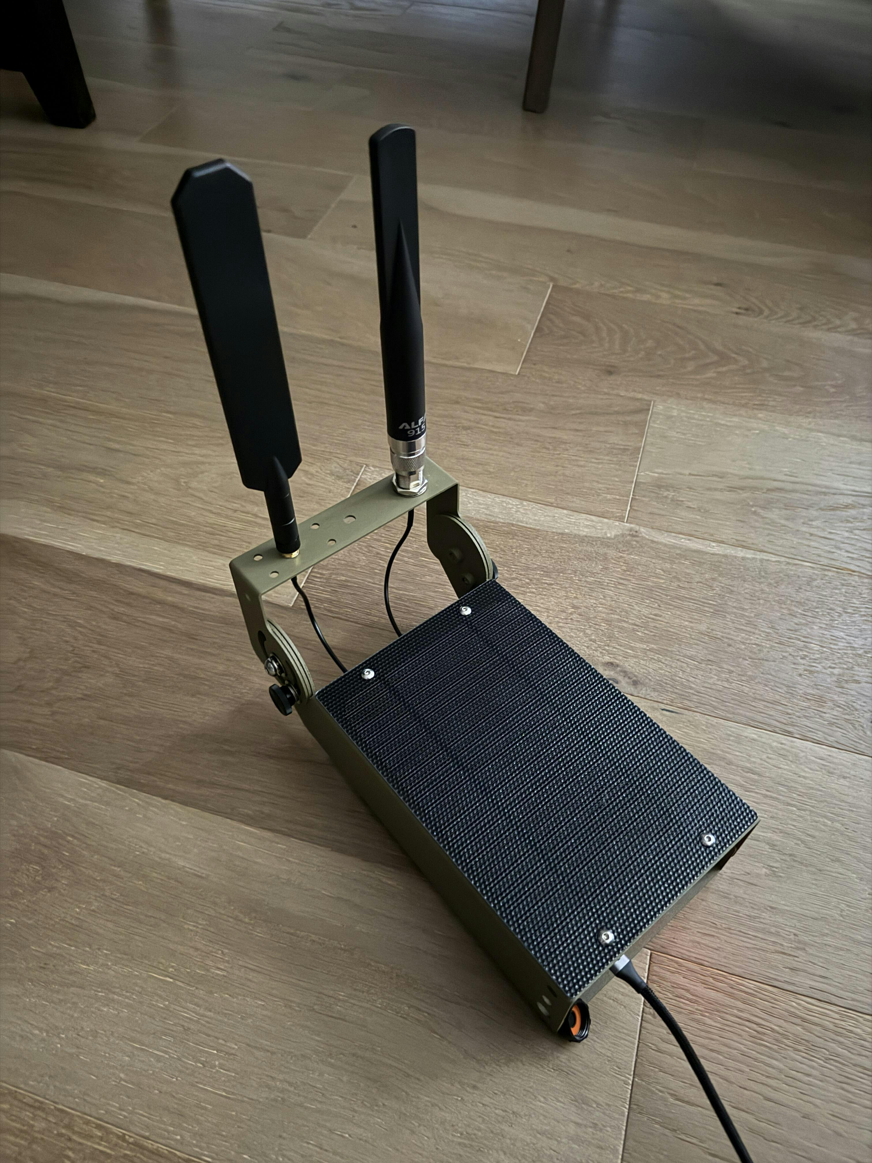 Laser cut, bent, powder coated, and assembled in Rhode Island. Intended for extended outdoor deployment, the frame will never rust and will provide years of durability in the elements. Collapses down for transport/storage without removing antennas. 180° adjustment on solar panel and 270° adjustment on antenna rail.